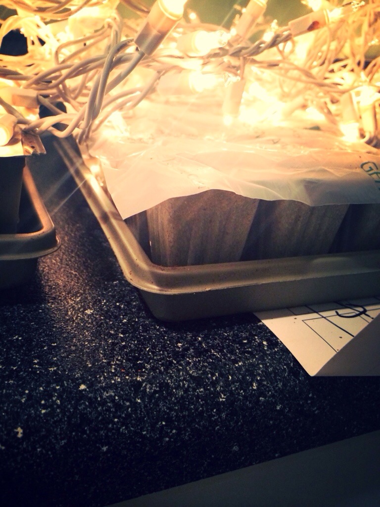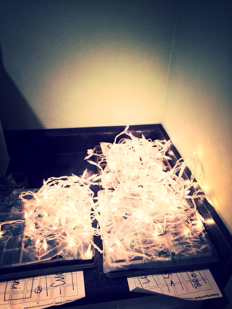 Handy google told me that seeds need 2 things, warmth and water. So, I set up a little corner of my craft room with the trays and put christmas lights on top to provide the heat source. Apparently the christmas lights give off heat without being too much of a fire hazard or energy consumer. It really just confused my brain and I couldn’t figure out if it was almost Christmas or almost Spring.