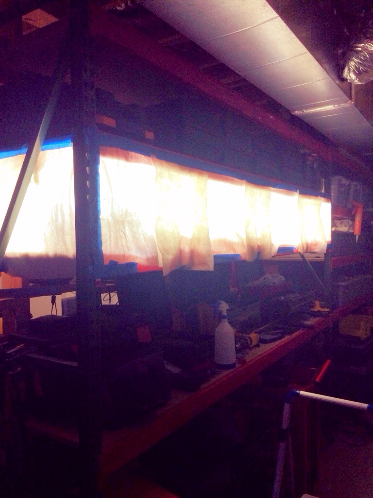 I had some sheets of 12×12 thin steel so I lined them up across the back of the shelf. I think this helps reflect the light and also the heat.