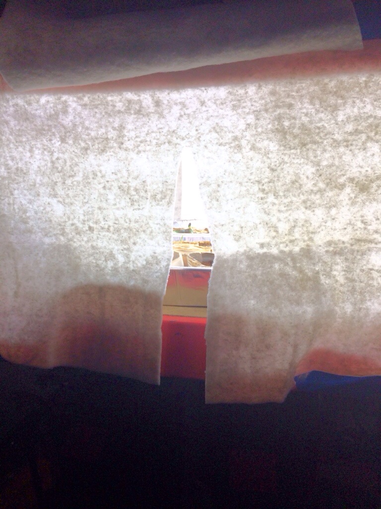 I was super worried about heat loss so for access I cut these slits into my batting. I then covered the whole slitted section with another square piece of batting. So, to access, you fold up the “door” and then fold back the slitted access.