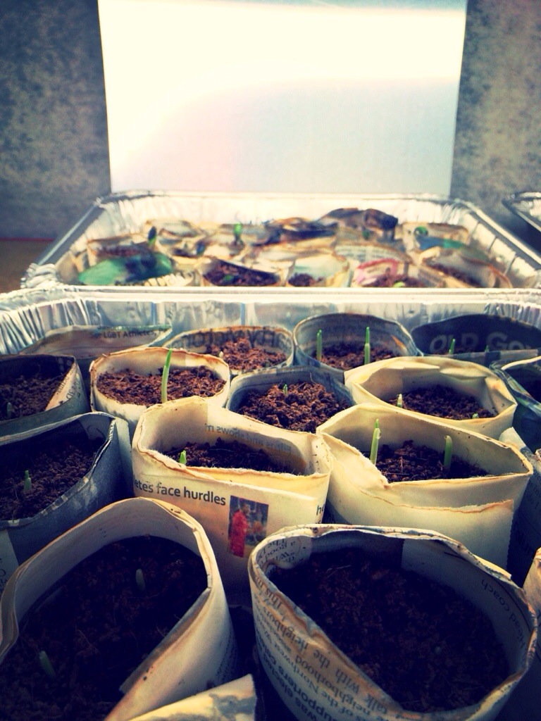 Except I still have 10 varieties to plant and I’m out of the ‘time saving’ cells. Now, my other bright idea of using recycled newspaper to make pots with the above mentioned pot maker is all I have left.