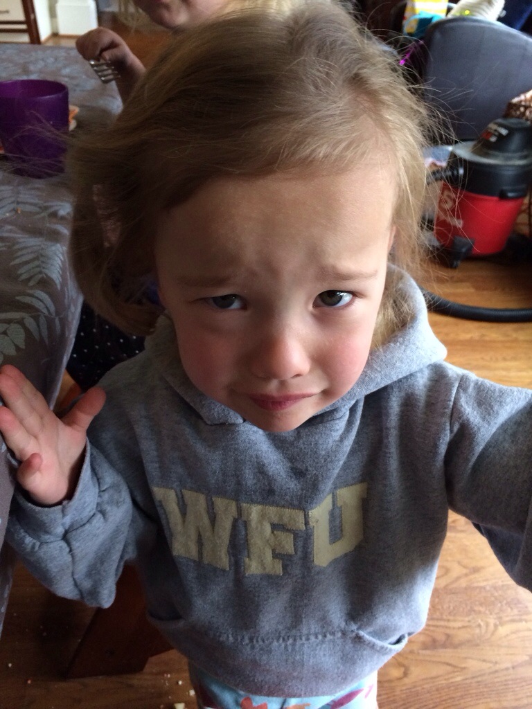 Or, 2, do I get down on her level and comfort the crying and offer support in her sadness, even though she still wasn’t getting more chocolate.