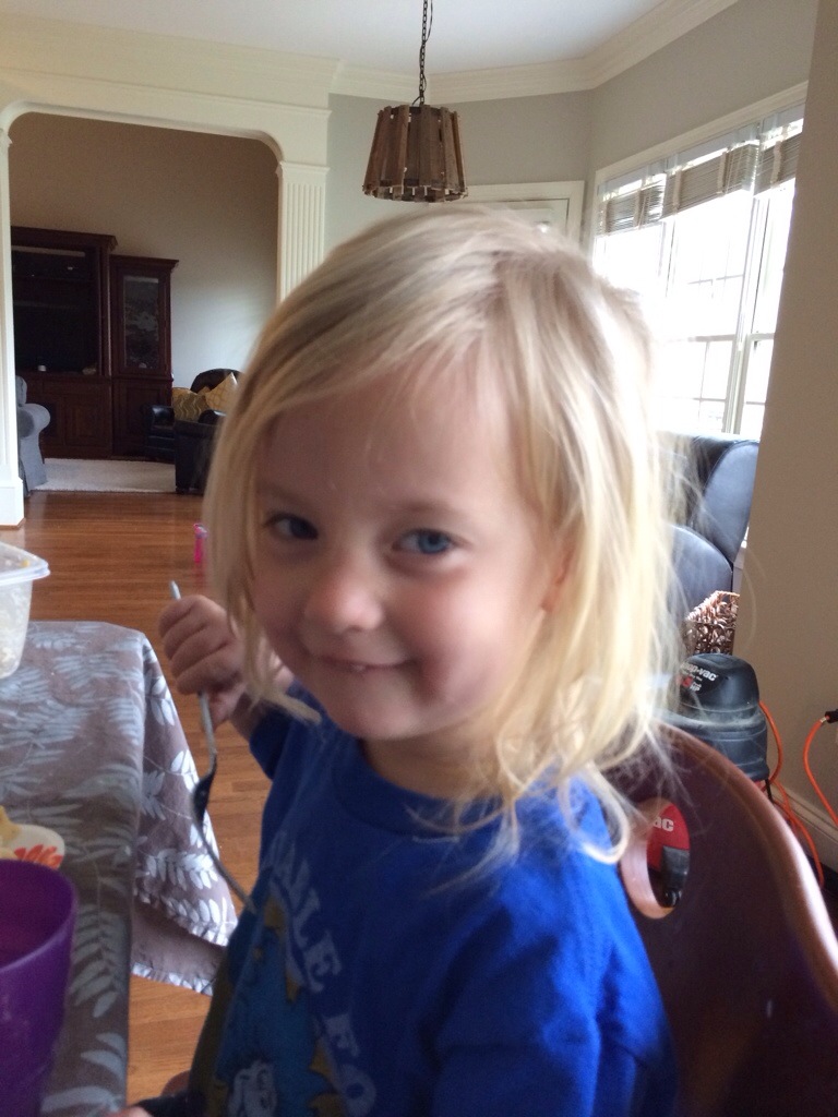 This morning I was telling you how super cute you looked in your pigtails and you were getting annoyed with me gushing on you. You finally said, “Is your brain on top?” I asked if you meant, “Is your brain on today?” and you said, “Yeah, that’s it!”.